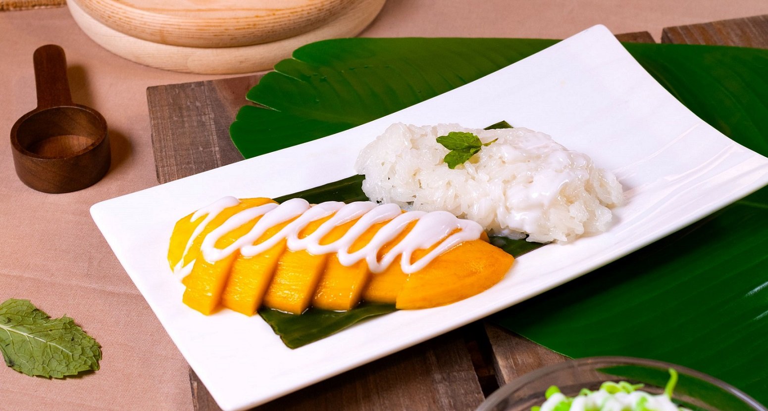 Mango Sticky Rice ($8.90): Fresh Thai honey mango served with sticky rice and coconut milk.
